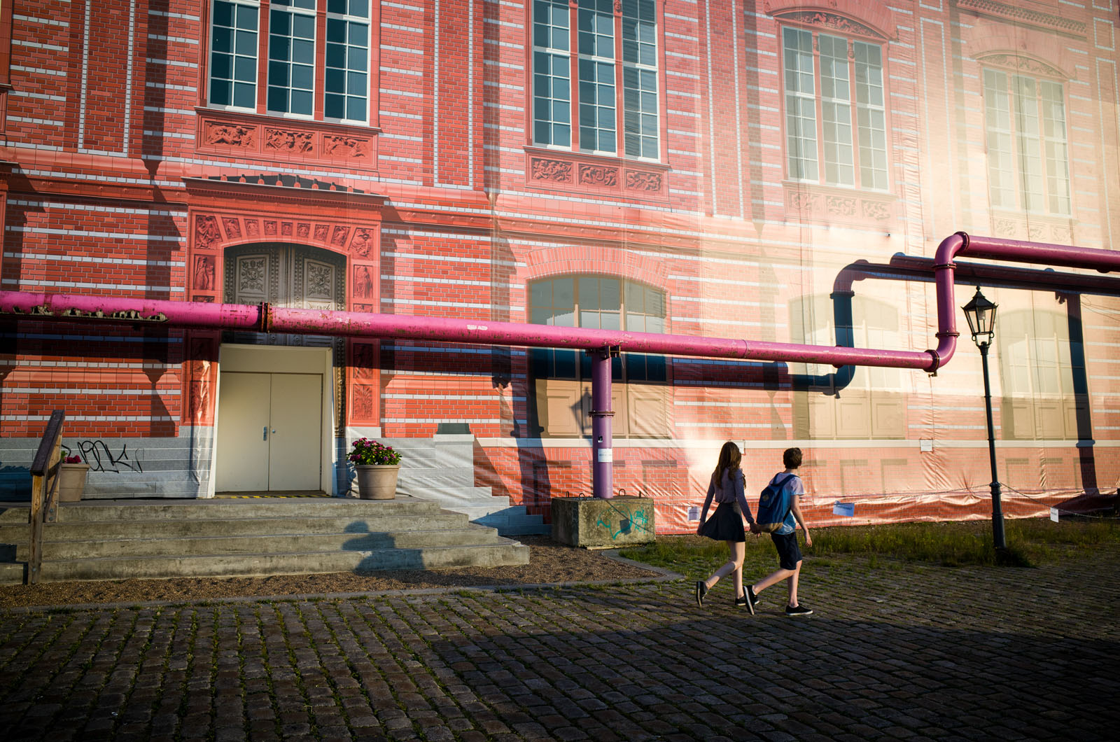 베를린 거리를 돌아다니다 보면, 파란색과 분홍색 파이프들이 머리 위로 동맥과 정맥처럼 이리저리 구불거리며 지나는 모습을 쉽게 볼 수 있다. 고풍스러운 건물들과 묘하게 조화를(혹은 대비를) 이뤄 하나의 설치작품을 보는 것 같으면서도, 흉물스럽게 보는 이들도 있다. 개인적으로는 회색 도시에 색의 숨결을 불어넣는 재미 요소라고 생각한다.